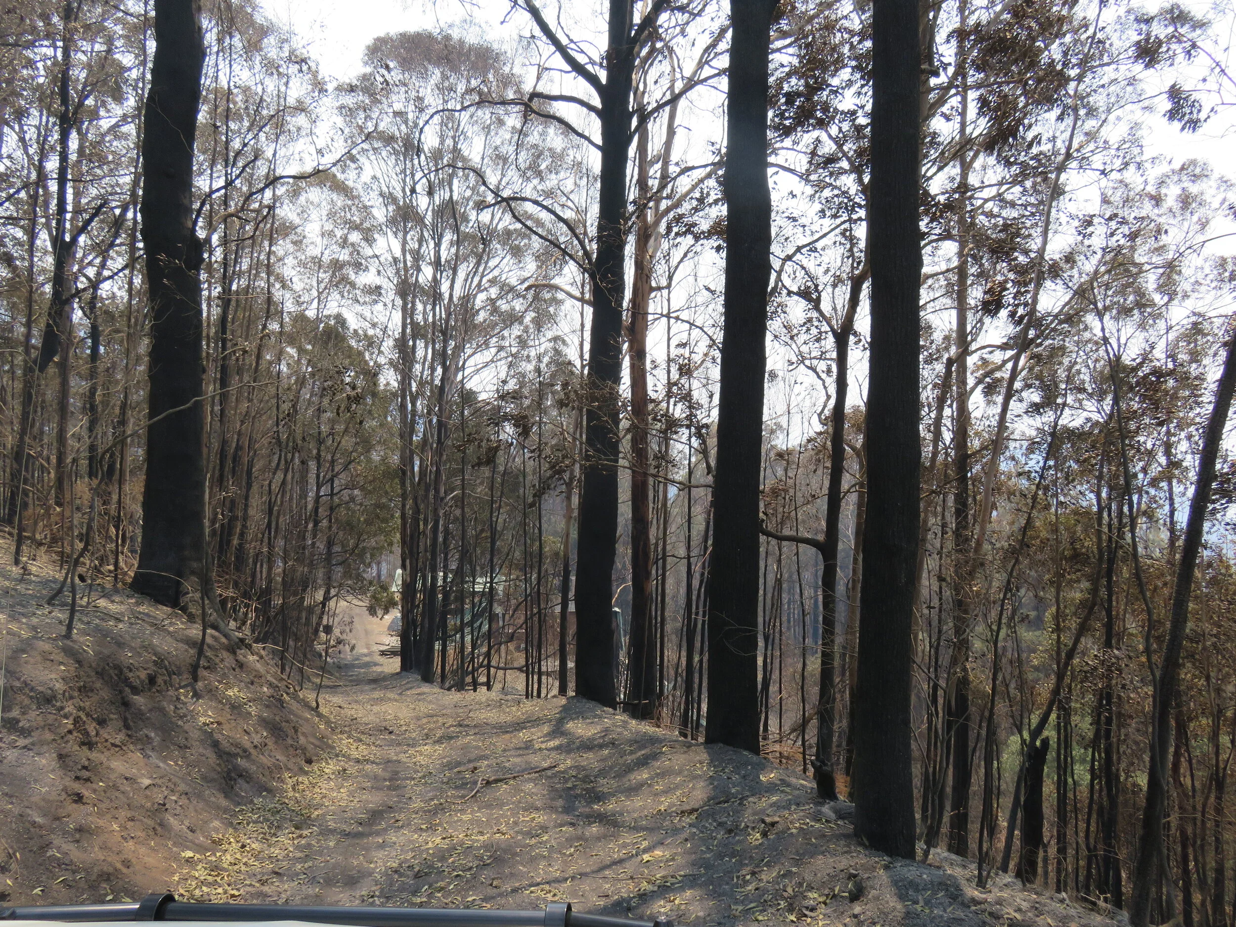 The track leading from the destroyed RHEMA FM transmitter hut to the residential property and granny flat also gutted by bushfire. Photo | Mark Spencer